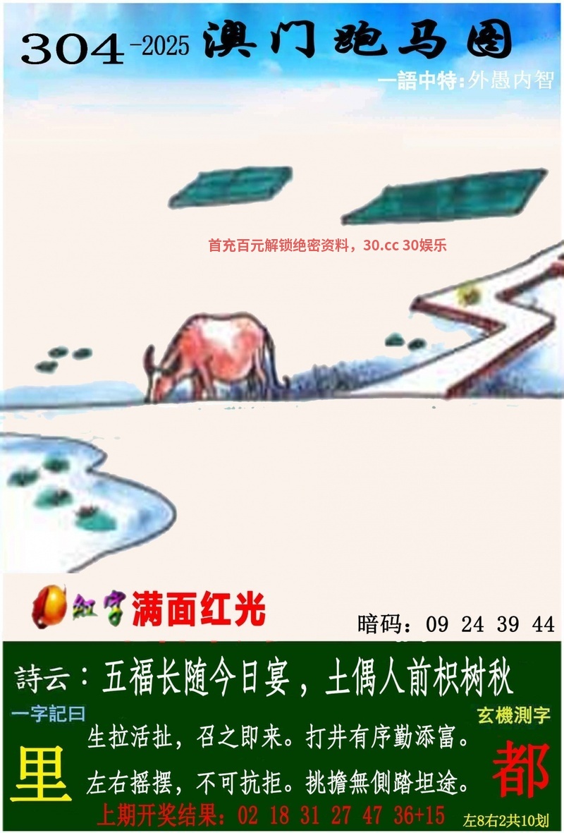 | 304期:肉菜草肖(吃草吃菜)开:马48准 |