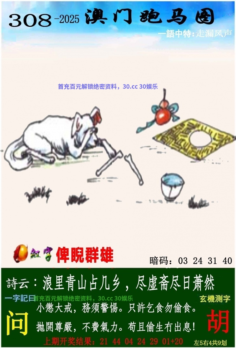 | 307期:强杀三合【01 04 10合】开:狗20准 |